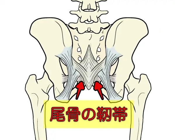 尾骨はお尻側から、かろうじて触れる骨であり、直接的に調整するのはなかなか難しい骨です。ですが、組織で見ると、尾骨には靭帯が多く付着していて、これを利用して尾骨を調整することは可能です。